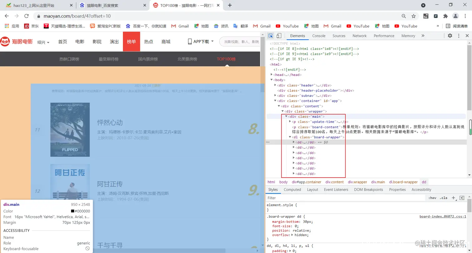 从中可以发现该页面的所有电影信息都在<div class="main">...</div>中。