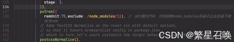 remUnit:75,exclude: /node_modules/i}), // 设计图为750,并且排除node_modules目录不让此目录下转化为rem