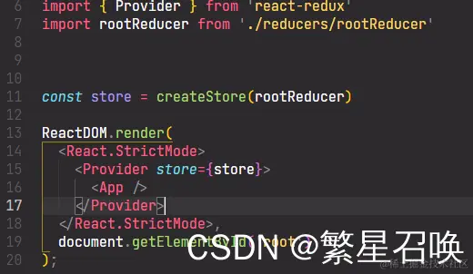 三、引入react-redux中的{Provider}将App进行包裹,并将store赋给Provider将store和组件进行关联