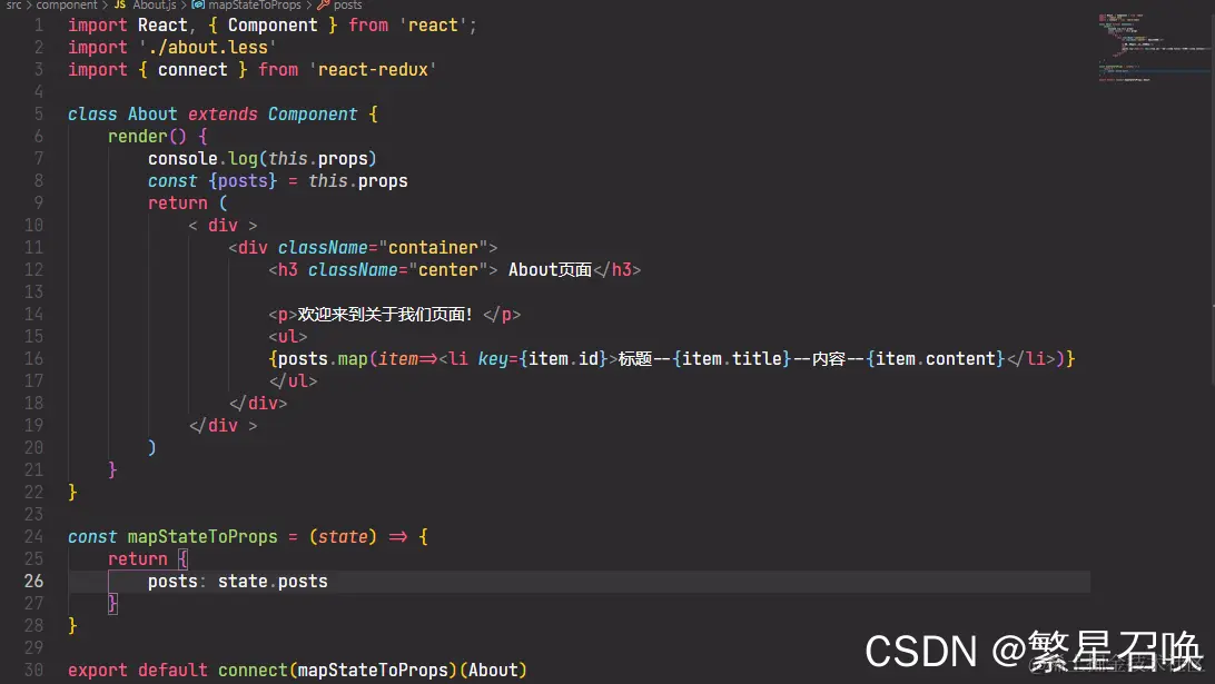 1. 引入react-redux中的connect组件,将数据与组件进行连接