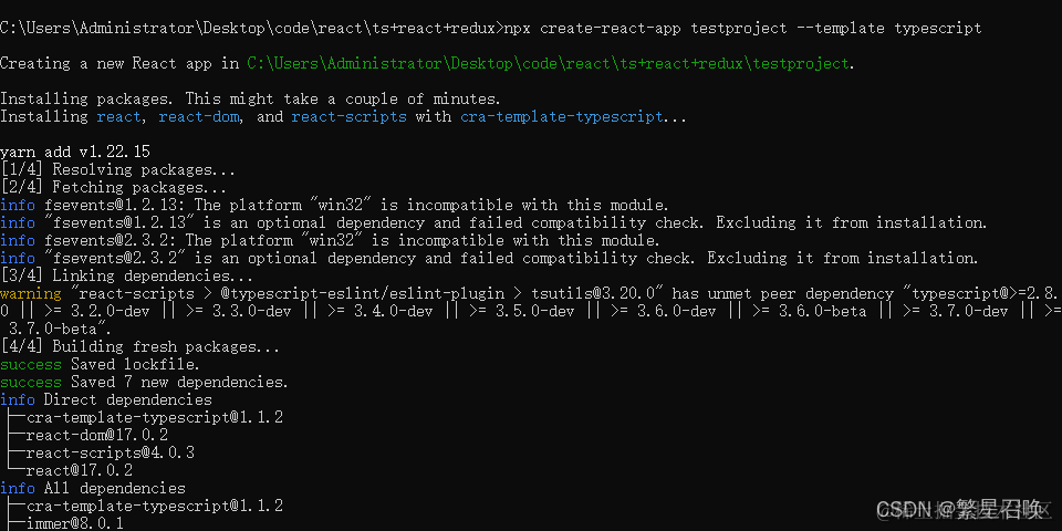 npx create-react-app testproject --template typescript