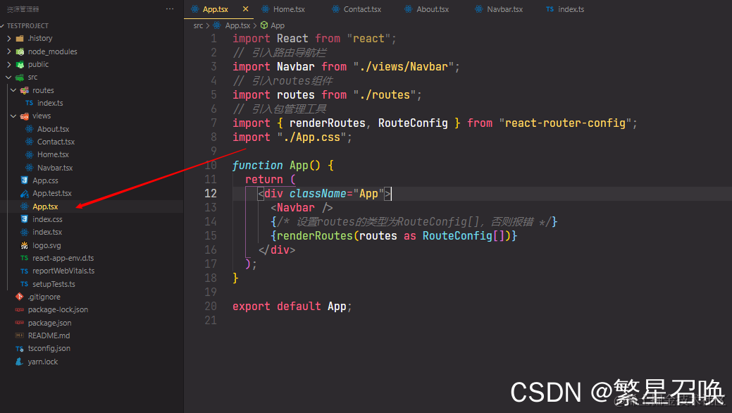 App.tsx中引入Route,Navbar和路由管理工具