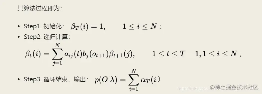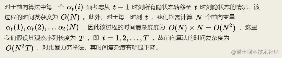 后向算法与前向算法相相似,其时间复杂度也为 O(N^2T)