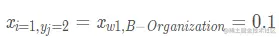 该表达式的意思是将w1w_1w1标记为 B-Organization的概率为0.1。