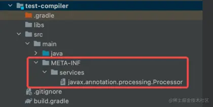 src/main/目录下创建META-INF/services/子目录,并创建文件名为javax.annotation.processing.Processor的文件,文件名是Processor类的全路径名,如下图: