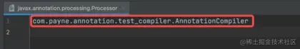 文件中加入自定义注解处理器的全路径名com.payne.annotation.test_compiler.AnnotationCompiler,如下图: