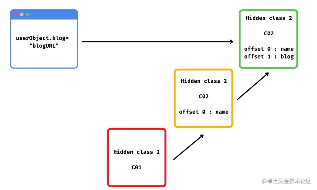 例如,如果你创建了另一个名为article的空对象(const articleObject = {}),V8引擎将不会创建一个新的隐藏类。相反,它将指向已经创建的C01类。