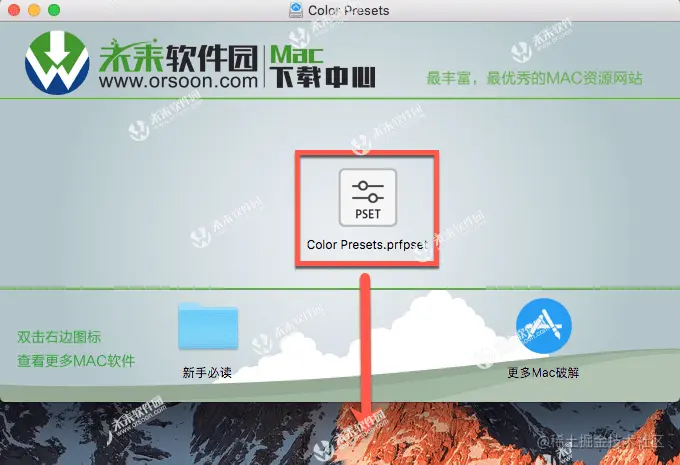这里以将Color Presets为例,将“Color Presets.prfpset”拖拽至桌面,如下图: