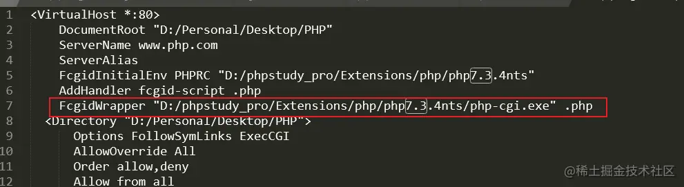 配置文件中:加载了mod_fcgid.so 模块,还需要配置额外的参数