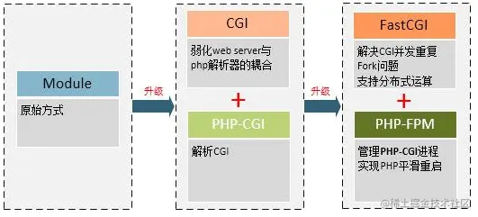 - phg-fpm 进程管理器,最初php-fpm是需要调用php-cgi来解释php代码的,php-fpm只起到进程管理的作用,在php5.4的时候,php-fpm就支持解析php代码,不在依赖php-cgi了。