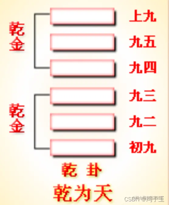 - 六位二进制数转化为十进制数并查表,得到本卦