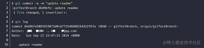 git commit -a -m "gitTestBranch second update"