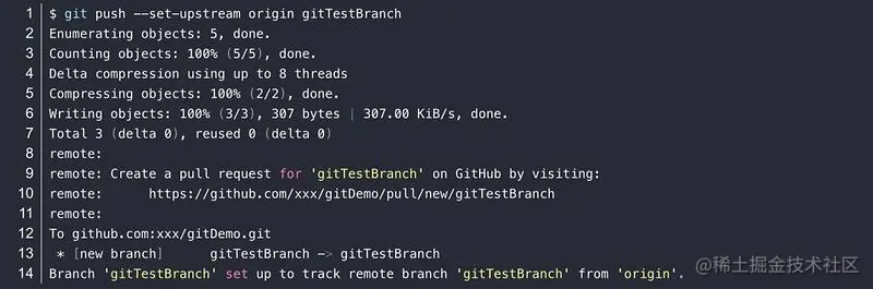 1.3) push到远程仓库并查看分支,首次push需要用git push -u 或git push --set-upstream 命令设置上下游的关联关系: