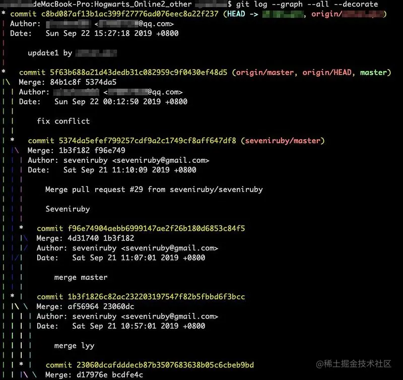 1.4) 使用git log --graph --all --decorate=short命令可以查看提交的分支走向,如果分支较多的话就会出现如下效果:\