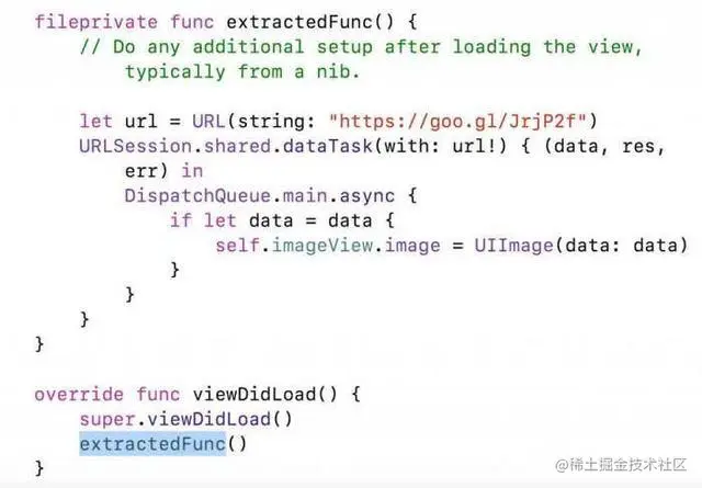 - 整段程式碼變成 function extractedFunc,此時你還可利用 Rename 將 function 取個更好的名字。