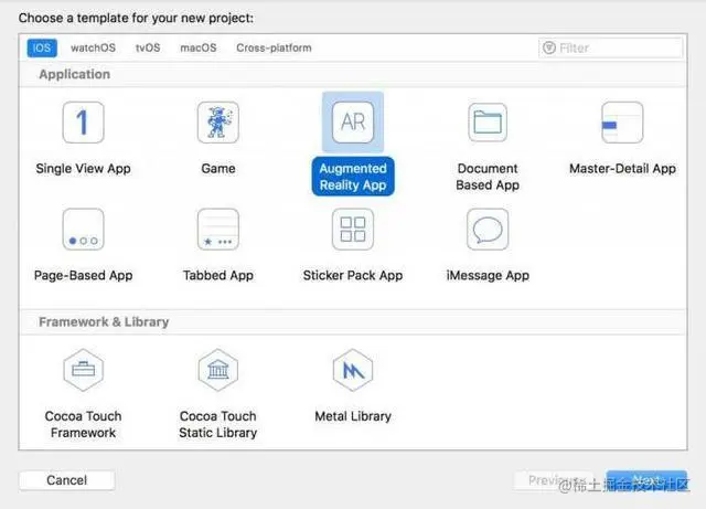 iOS App 多了製作 AR 特效的 Argumented Reality App 樣版和文件 App 的 Document Based App 樣版。