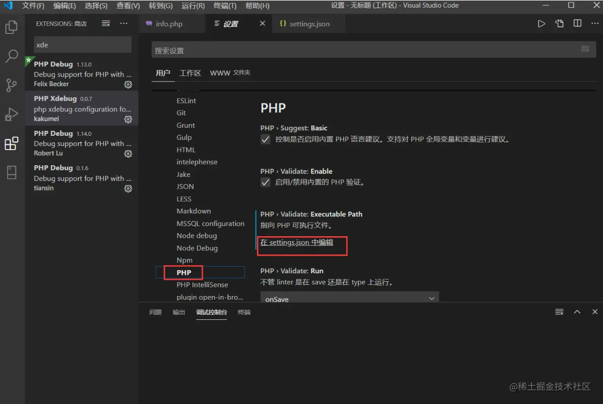 在里面添加安装xDebug版本的php.exe路径
