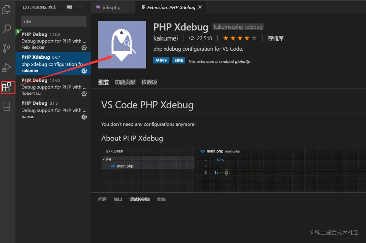 在vscode直接搜索PHP Xdebug就可以安装: