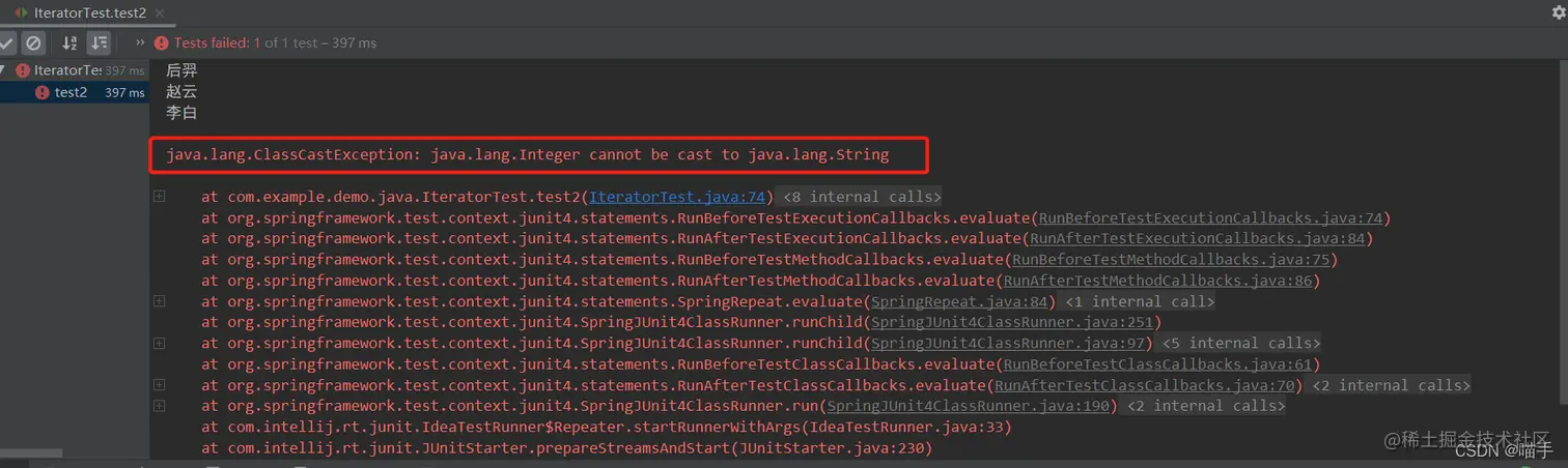 java.lang.ClassCastException: java.lang.Integer cannot be cast to java.lang.String 提示的很明了了,不能将Integer类型转成String类型,这是啥情况?为什么会发生类型转换异常报错呢?
