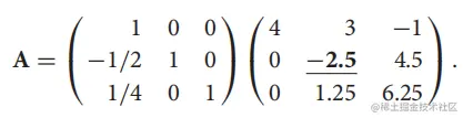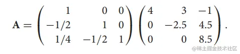 此时,我们已经成功地将A矩阵分解为了一个下三角矩阵L与一个上三角矩阵U。