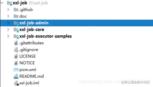 从官方将源码下载下来,当前发布版本为2.2.0,该版本下载的为最新版本2.2.1,。代码相差不大,接下来对xxl-job进行一步一步拆解