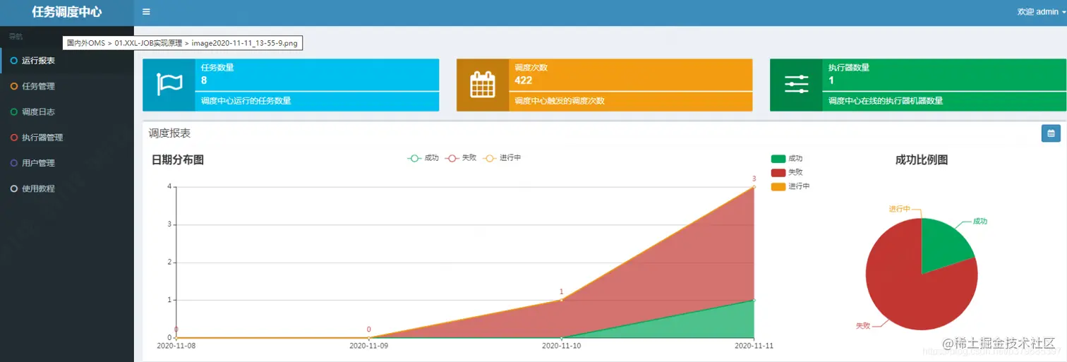 该目录为调度中心源码,包括任务的管理,执行,调度,以及运行监控报表。喏,就下面这个