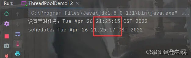 注意,如果执行任务时间大于设置的定时任务执行时间,那么此方法会以执行任务的时间为准,简而言之,就是哪个时间长就以哪个时间作为定时任务执行的周期。
