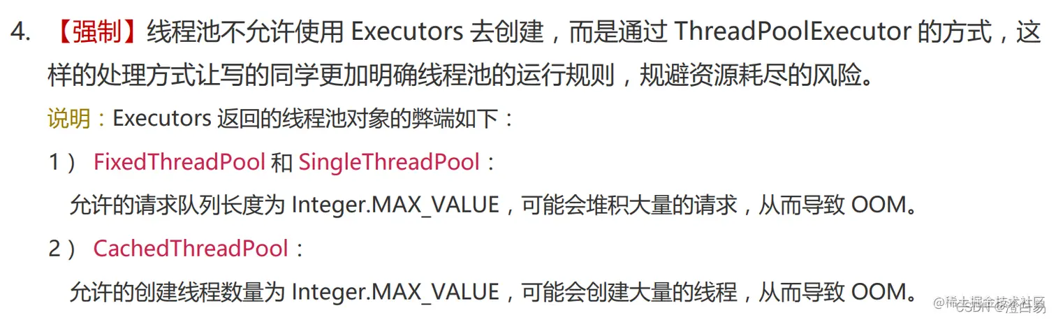 阿里巴巴在其《Java开发手册》中也强制规定:线程资源必须通过线程池提供,不允许在应用中自行显式创建线程。