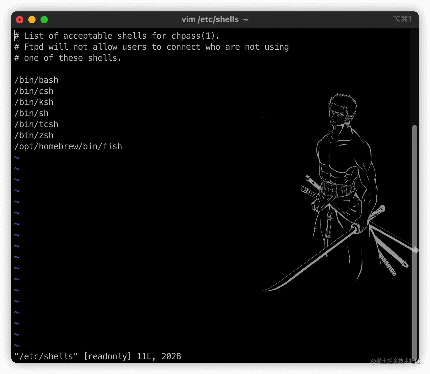 接着,我们手动来更改 shell 列表,使用如下命令即可。使用 sudo 是因为要用到管理员的权限,所以这里还需要你知道管理员的密码。