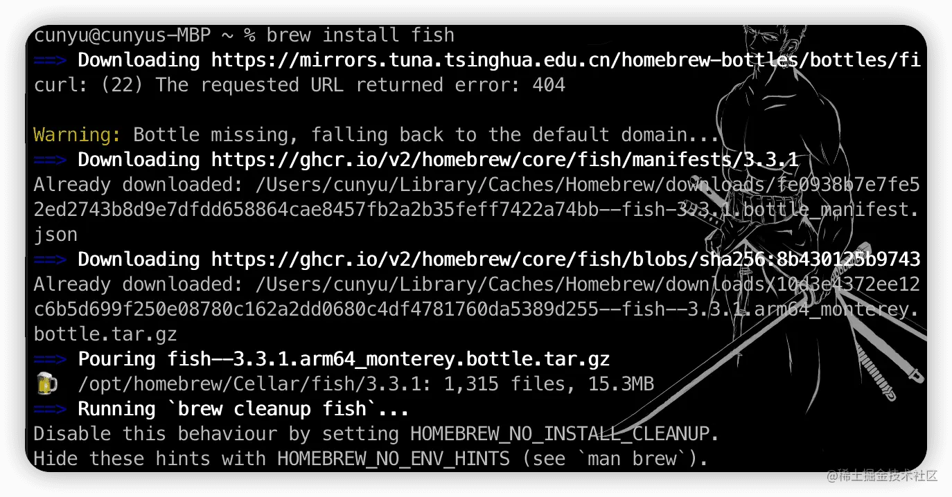 接着再使用上面安装 Fish 的命令进行安装即可。