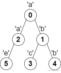 Input: parent = [-1,0,0,1,1,2], s = "abacbe"