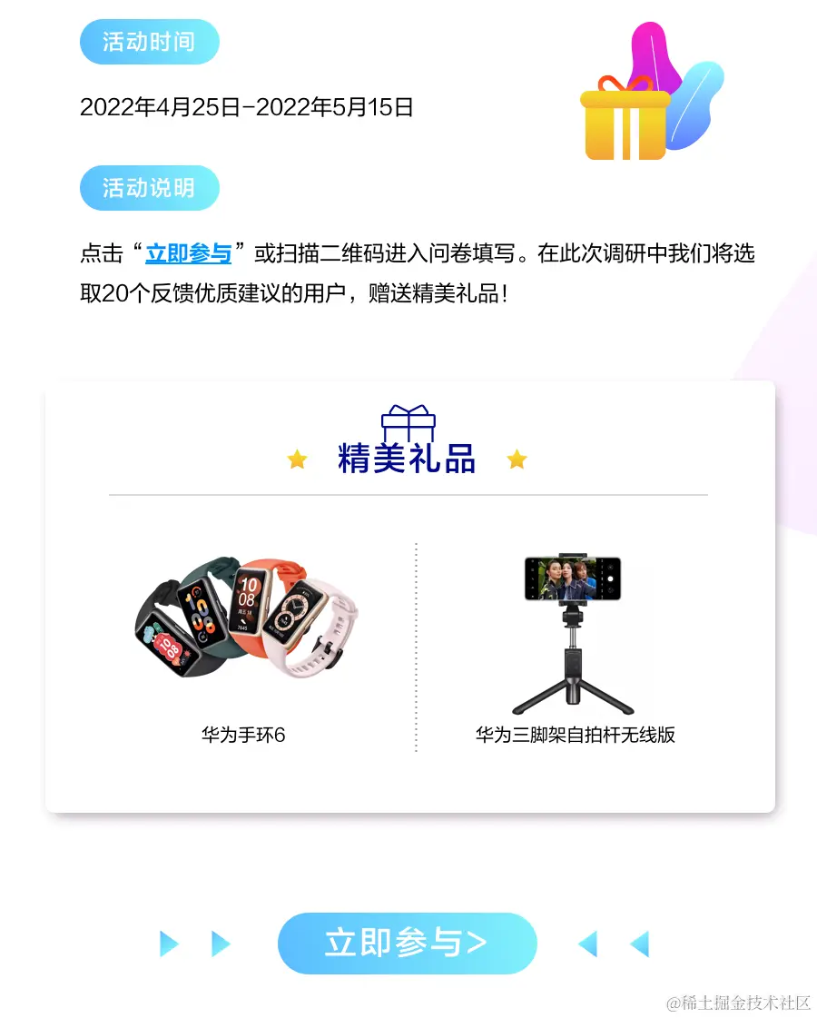 【有奖调研】华为分析服务诚邀您参与,您的真实反馈可以让我们变得更好! HarmonyOS_SDK 2022-04-27 174 阅读1分钟 了解更多详情>> 访问华为开发者联盟官网 获取开发指导文档 华为移动服务开源仓库地址:GitHub、Gitee 关注我们,第一时间了解 HMS Core 最新技术资讯~