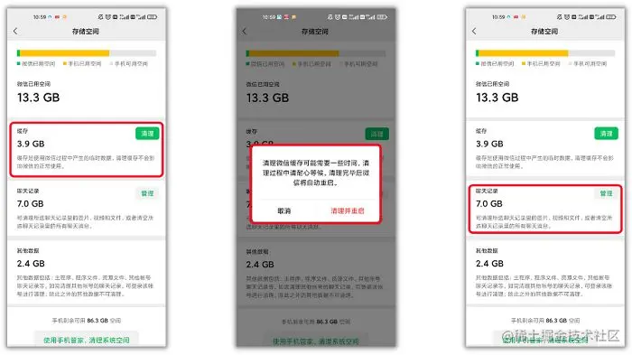 步骤4.空间占用统计完成后,我们可以选择清理缓存,清理完成后微信将会自动重启,同时我们还可以清理聊天记录哦!