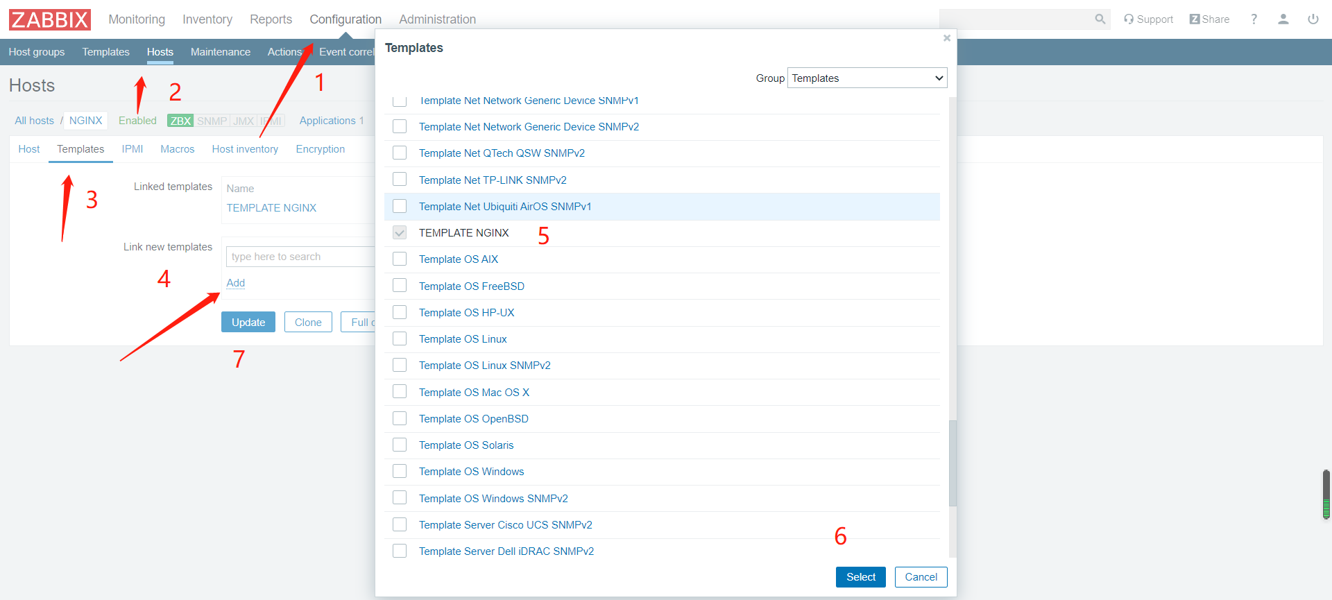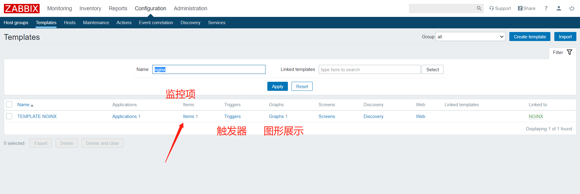 17.创建监控项,也是先找到刚刚创建的模板,如果需要监听多个,就重复创建几次