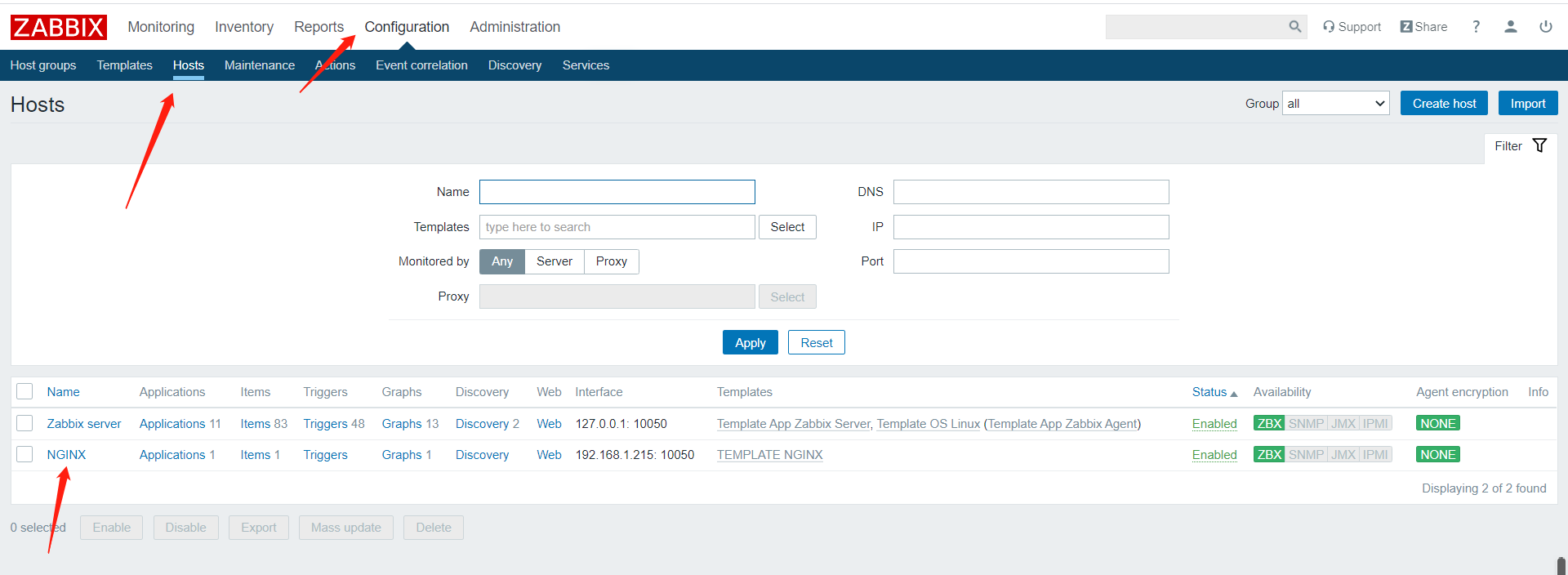 19.为主机添加模板,找到主机点击进去