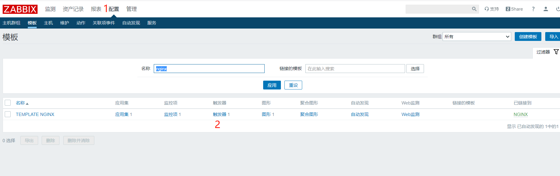 32.创建一个触发器,我们是主机是关联到模板上的,所以我们还是在模板上创建一个触发器
