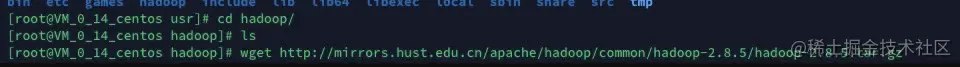我先在CentOS 7.4的服务器的/usr/目录新建了一个hadoop目录,然后进入新建的hadoop目录,下载hadoop。