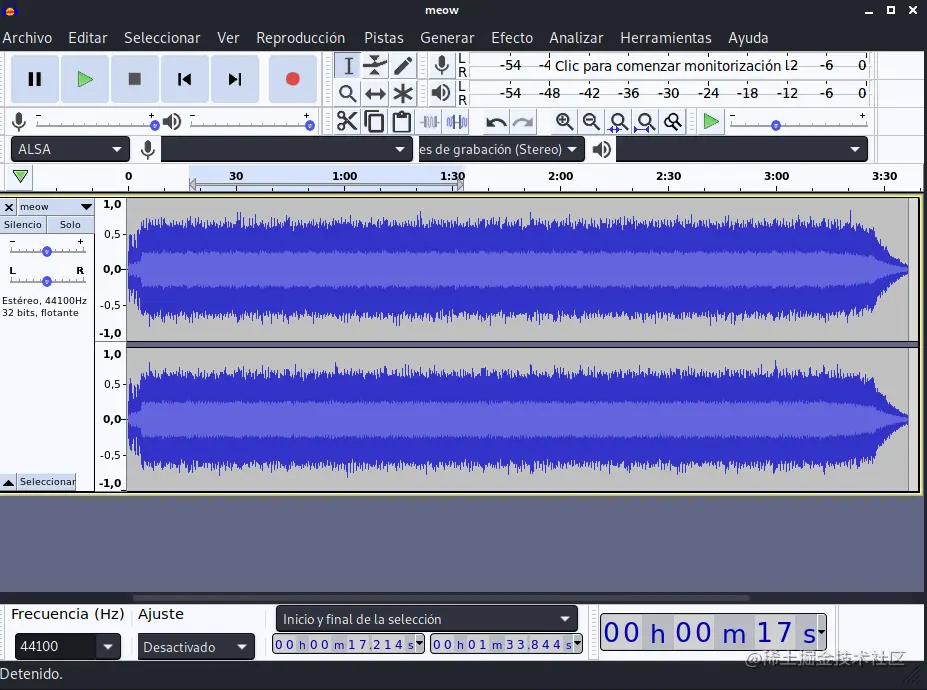 meow.wav: RIFF (little-endian) data, WAVE audio, Microsoft PCM, 16 bit, stereo 44100 Hz