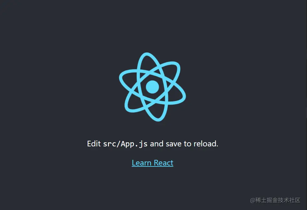 - 运行npm start,浏览器中看到如下界面代表搭建React初始项目成功!: