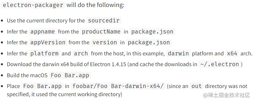 对于我们没有写的内容,electron-packager会根据项目的package.json来进行填充。