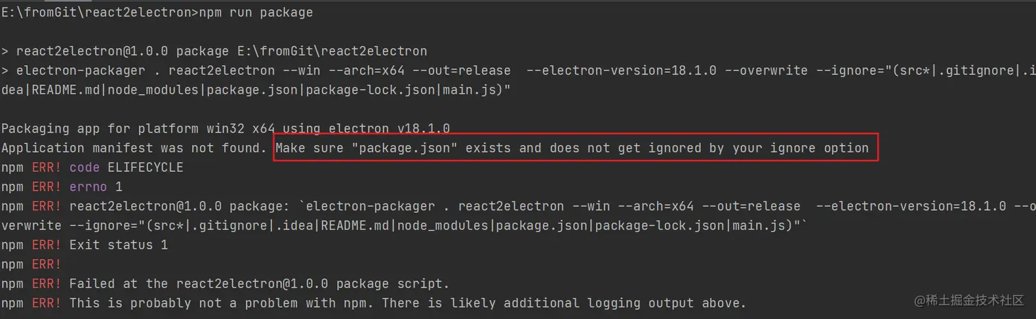 需要注意的是,main.js和package.json文件不能被ignore,不然打包会报错