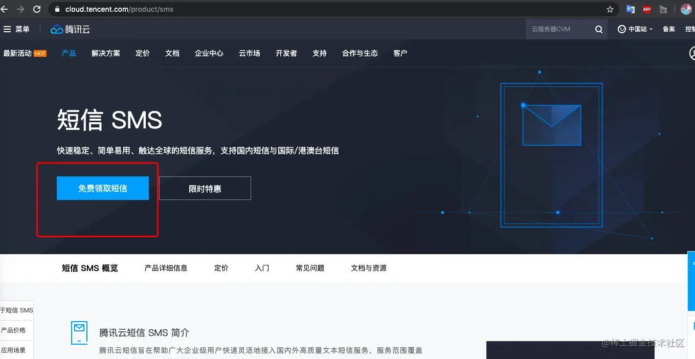 点击“免费领取短信”,会送一百次调用。