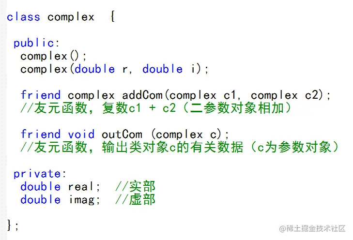 注意到实现加减法的两个成员函数的返回值是complex类,这意味着我们需要在函数体内创建一个complex类对象,为了方便,我们使用带参数的构造函数,直接将两个复数的实部虚部做运算作为构造函数的参数,然后直接返回这个类对象,完事。