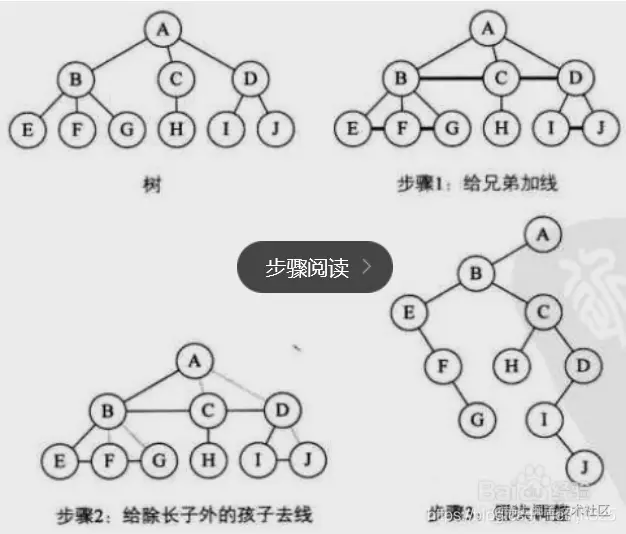 我们看一下一颗多叉树转为二叉树(一道典型的leetcode习题)的过程