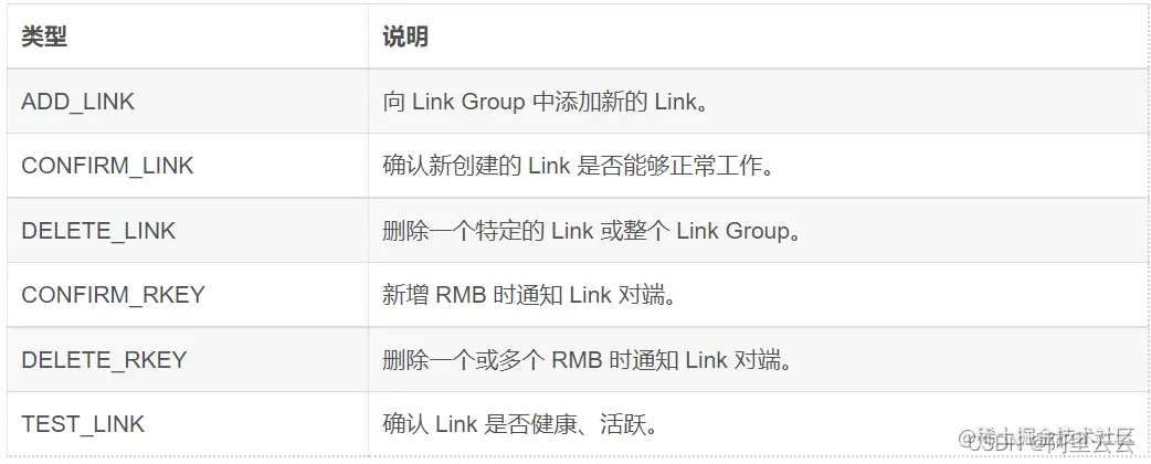 LLC 消息通常为请求-回复模式,用于传输 Link 层面的控制信息,如添加/删除/确认 Link,确认/删除 r_key 等。