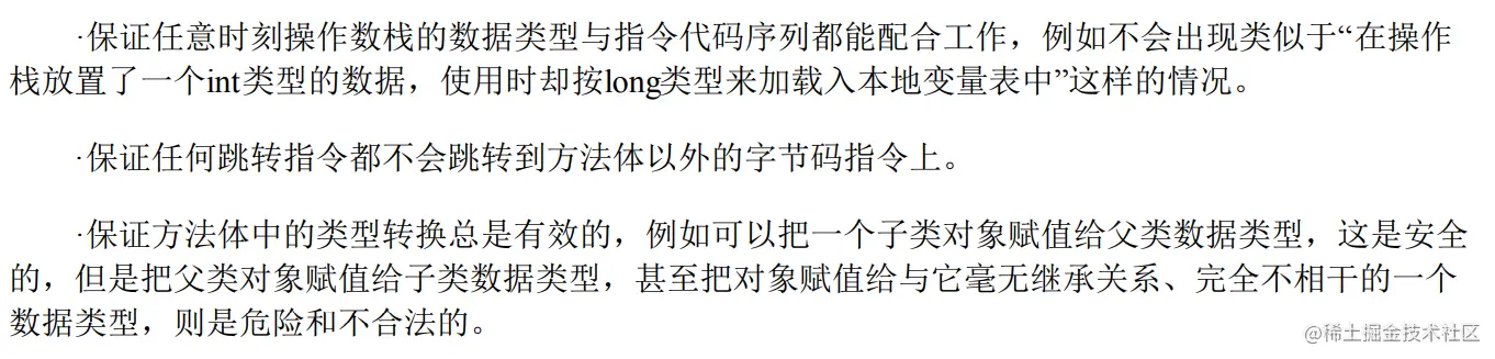 - 1∶操作数栈中元素的数据类型必须和字节码指令的顺序严格匹配\