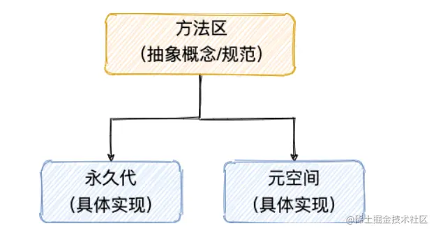永久代以及元空间是 HotSpot 虚拟机对方法区的两种具体实现方式。\