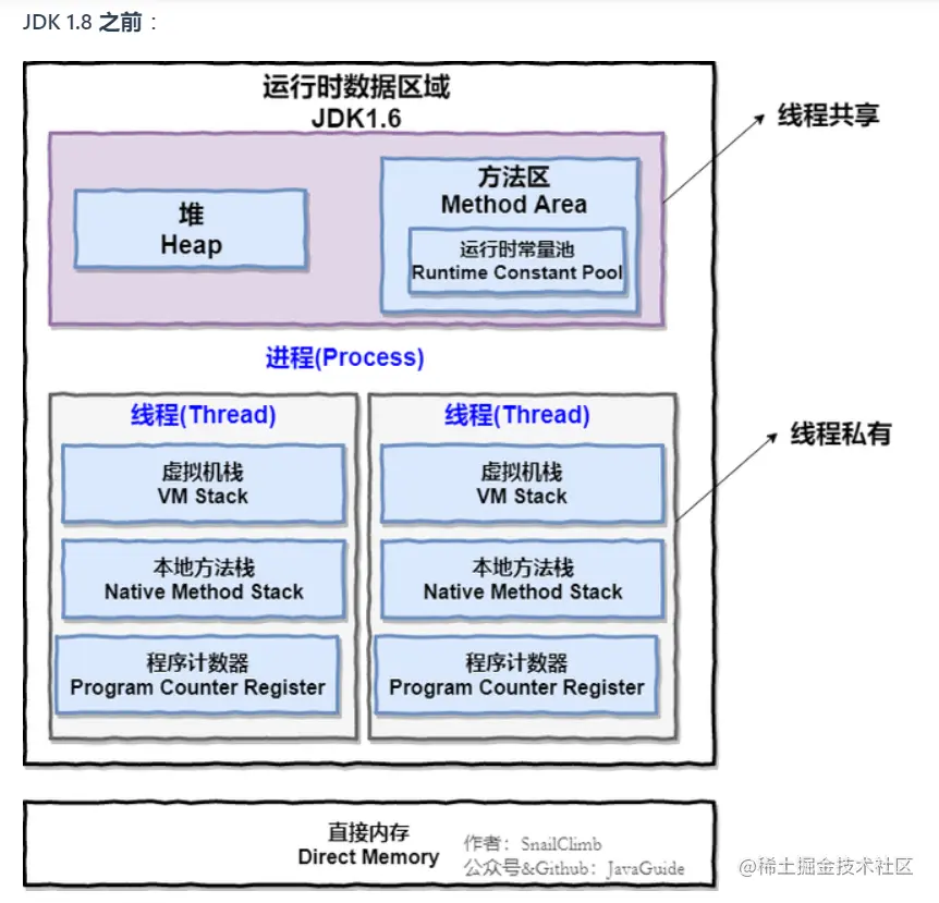 不同版本的Java运行时数据区\