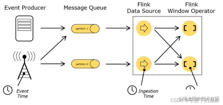 Flink 支持了流处理程序在时间上的三个定义:事件时间 EventTime、摄入时间 IngestionTime 、处理时间 ProcessingTime。同时也支持 watermark 机制来处理滞后数据。