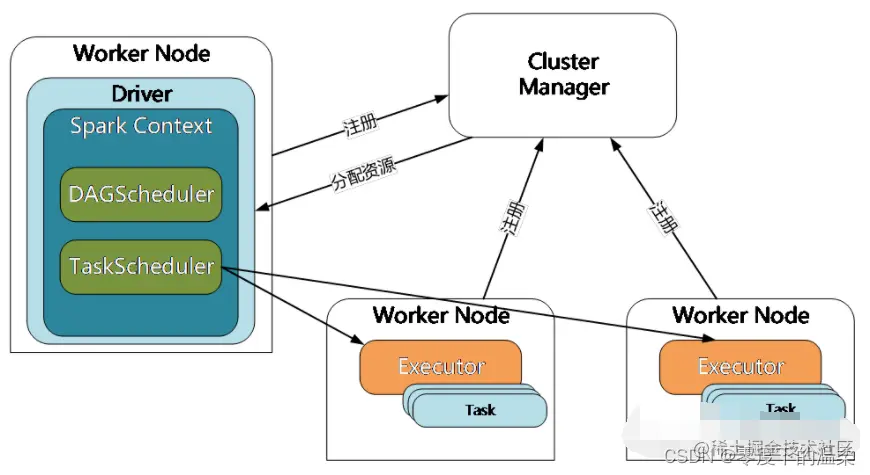 Spark Streaming 连续不断的生成微小的数据批次,构建有向无环图DAG,Spark Streaming 会依次创建 DStreamGraph、JobScheduler。